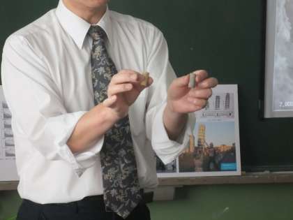先週の金曜日に6年生の理科「土地のつくりとはたらき」の単元で、防衛大学校の正垣先生をゲストティーチャーとしてお招きして授業を行いました。先生は地盤工学の専門家ですので、子供たちには、「土の分類と性質」「地形と地層」「地盤による災害のおき方(地すべり、地震、土石流、液状化現象」と「どう対処したらよいか」まで教えていただきました。その時の様子です。
