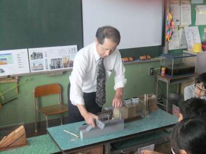 先週の金曜日に6年生の理科「土地のつくりとはたらき」の単元で、防衛大学校の正垣先生をゲストティーチャーとしてお招きして授業を行いました。先生は地盤工学の専門家ですので、子供たちには、「土の分類と性質」「地形と地層」「地盤による災害のおき方(地すべり、地震、土石流、液状化現象」と「どう対処したらよいか」まで教えていただきました。その時の様子です。