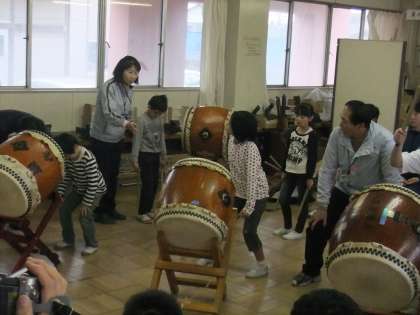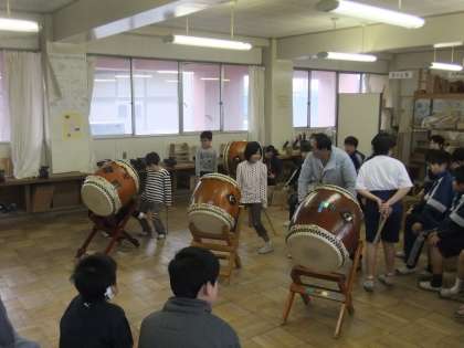 今日、あさひ学級の子供たちが楢原中学校に行き、交流をしてきました。楢原中学校の5組さんの太鼓の演奏は本当に見事でした。感動しました。そして、そのあと、ゲームをしながら交流活動をして、お礼にあさひの子供たちは「オーラリー」をハンドベルで演奏しました。そして、最後に楢原中学校の先生に太鼓を教えていただきました。