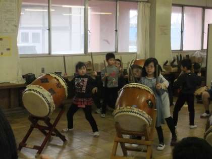 今日、あさひ学級の子供たちが楢原中学校に行き、交流をしてきました。楢原中学校の5組さんの太鼓の演奏は本当に見事でした。感動しました。そして、そのあと、ゲームをしながら交流活動をして、お礼にあさひの子供たちは「オーラリー」をハンドベルで演奏しました。そして、最後に楢原中学校の先生に太鼓を教えていただきました。
