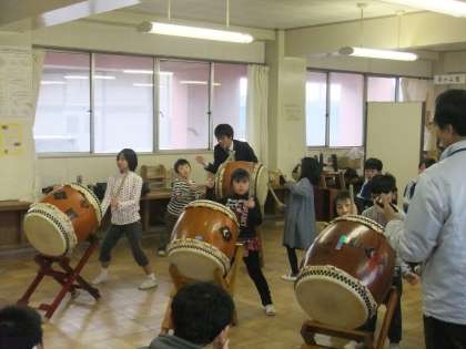 今日、あさひ学級の子供たちが楢原中学校に行き、交流をしてきました。楢原中学校の5組さんの太鼓の演奏は本当に見事でした。感動しました。そして、そのあと、ゲームをしながら交流活動をして、お礼にあさひの子供たちは「オーラリー」をハンドベルで演奏しました。そして、最後に楢原中学校の先生に太鼓を教えていただきました。
