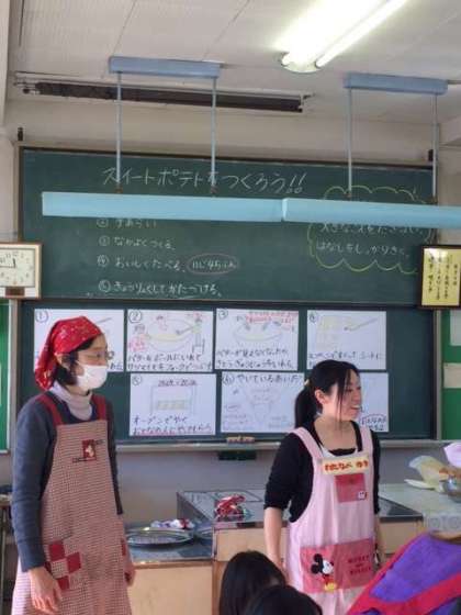 先週の土曜日に、1年生が、自分たちで育て収穫したサツマイモを使って、スイートポテトを作りました。
