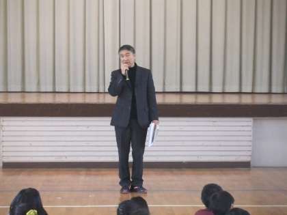 今日は3学期の始業式。始業式の後、生活指導主任から1月の生活目標の話があり、そのあとは、教務主任から学校評価を受けて、子供たちにみんなの頑張ったところとこれから頑張らなければならないことことの話がありました。