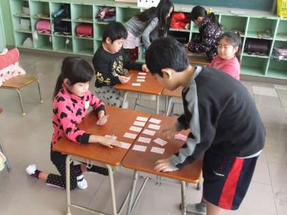昨日は始業式で3学期の初日です。3学期の目標を書いたり、漢字50問テストをやっていたり、書写をやっていたり、百人一首をやっていたり、様々でした。