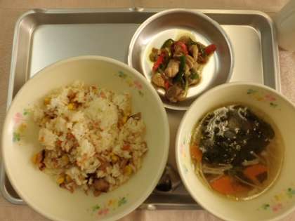 今年初の給食にたこやピーマンなど少し子供たちが苦手な食材が登場していましたが、お友達とワイワイおしゃべりしながら、よく食べてくれました。