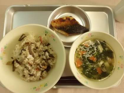 かやくごはんには椎茸、きのこ汁にはしめじとえのきが入っており、きのこが苦手な子は苦戦するかな・・と思いきや、食缶に戻す子はほとんどいません。残食もほとんどありませんでした。新年そうそう子供たちの成長を感じますね。