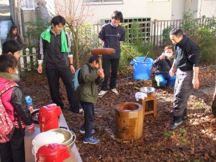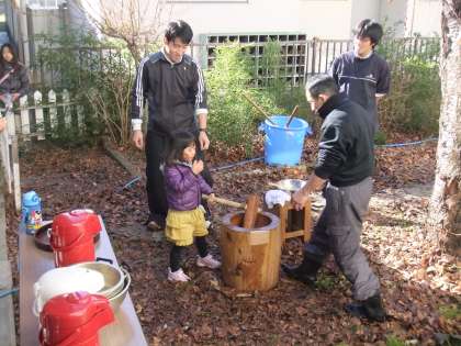 先週の土曜日、親児の会とPTA共催で、もちつき会がありました。