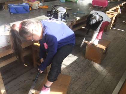 今日の学校公開日の図工の授業です。3年生がのこぎりを使って木を切っていました。初めてのこぎりを使う子供たちがたくさんいました。みんな頑張っていました。