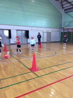 あさひ学級のみんなが、体育館で体育をしていました。大縄とびとボール投げ、ドッジボールをしていました。