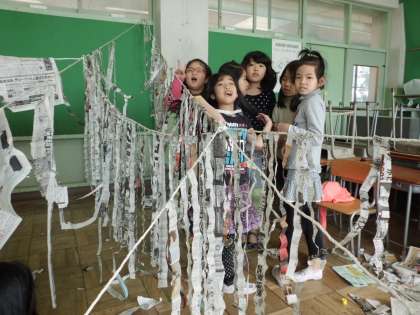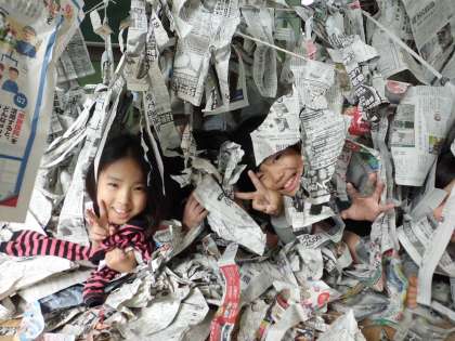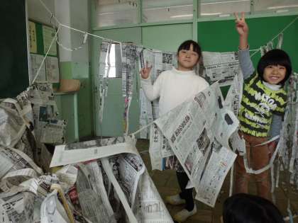 新聞紙をつないでいって、