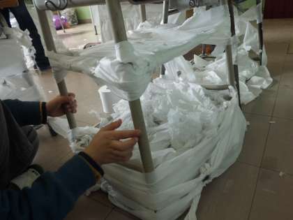 トイレットペーパーを使っての造形遊びです。