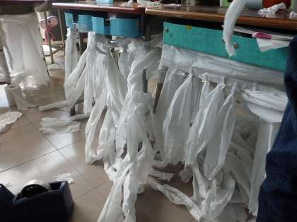 机の下の世界をトイレットペーパーを使って