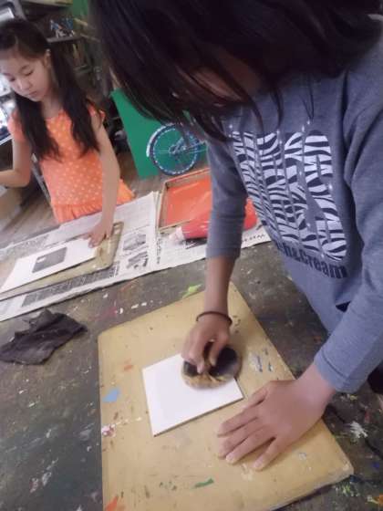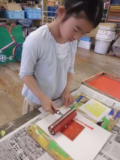 「版画は刷って、紙をめくる瞬間が一番ワクワクドキドキするんだよ。」