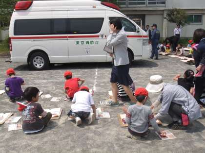 遅くなりましたが、4月25日土曜日の学校公開日の授業の様子を紹介します。 1〜3年生の消防車写生会今年は救急車の写生会になりました。