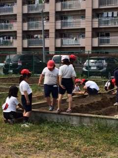 あさひ学級と3年生が、畑の草取りなどをしていました。