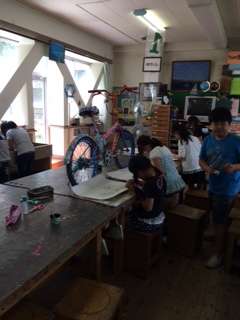 図工の授業の様子です。自転車を描いていました。