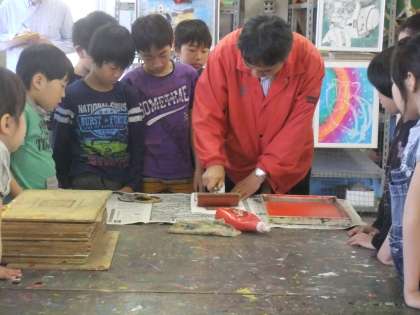先日、図工の授業を参観してきました。「版画でアート」で5年生の授業でした。