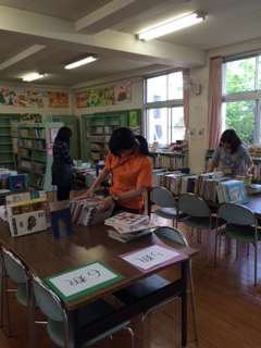 学校司書と本校の図書担当の先生と、図書ボランティアの方々と、本の配置替えを行いました。