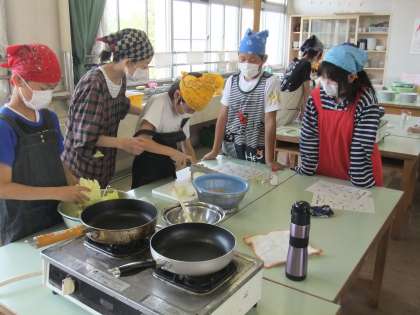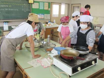 先週の金曜日、6年生が家庭科で調理実習を行いました。野菜炒めといり卵、スクランブルエッグでした。さすが6年生、とても上手においしく出来上がりました。