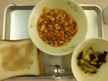 豆が苦手な子はポークビーンズに入っている豆の多さに苦戦をしていました。