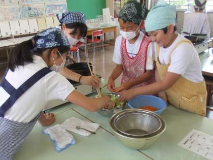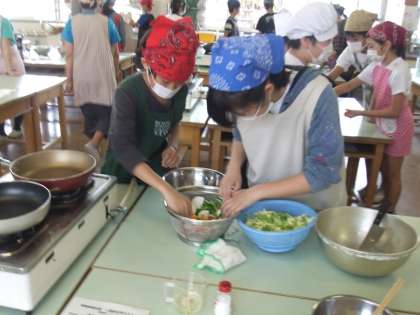先週の金曜日、6年生が家庭科で調理実習を行いました。野菜炒めといり卵、スクランブルエッグでした。さすが6年生、とても上手においしく出来上がりました。