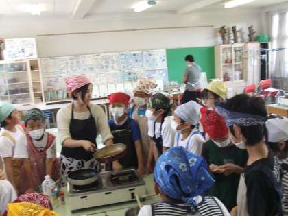 先週の金曜日、6年生が家庭科で調理実習を行いました。野菜炒めといり卵、スクランブルエッグでした。さすが6年生、とても上手においしく出来上がりました。