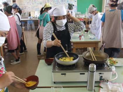 先週の金曜日、6年生が家庭科で調理実習を行いました。野菜炒めといり卵、スクランブルエッグでした。さすが6年生、とても上手においしく出来上がりました。