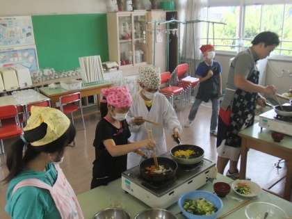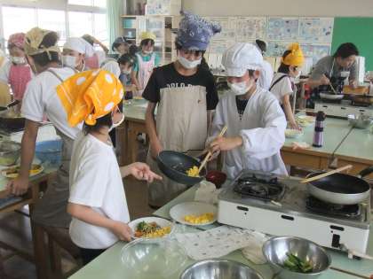 先週の金曜日、6年生が家庭科で調理実習を行いました。野菜炒めといり卵、スクランブルエッグでした。さすが6年生、とても上手においしく出来上がりました。