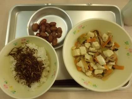 甘い煮豆が苦手な子が多いのですが、今日は甘煮は甘さ控えめだったので、食べやすいという声が聞こえてきました。