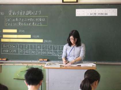 5年生の授業を参観してきました。算数「比例」の学習を指導していました。