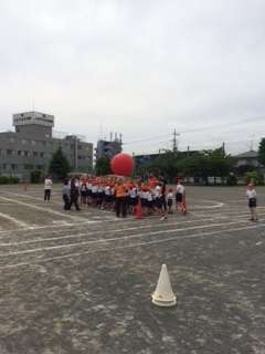運動会まであと一週間になりました。昨日は、初めて全校練習を行いました。準備運動、整理体操の隊形、全校競技の大玉送りの練習を行いました。