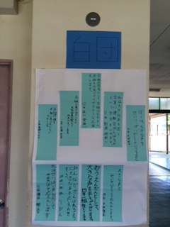 昇降口に、紅組と白組の応援団の皆さんの決意が掲示してあります。