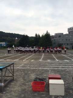 今日の全校練習は、入場、準備運動、応援練習、綱引きの練習を行いました。