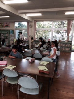 今日、木曜日は、学校司書の先生が本校にいらっしゃる日です。1時間目に4年生が学校司書の先生に読み聞かせをしていただきました。