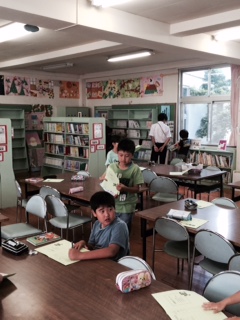 今日、木曜日は、学校司書の先生が本校にいらっしゃる日です。1時間目に4年生が学校司書の先生に読み聞かせをしていただきました。