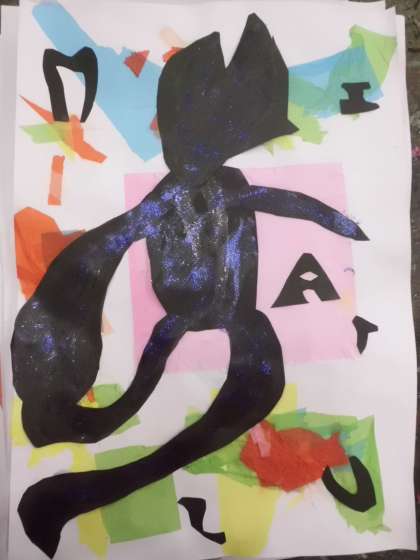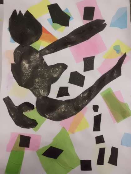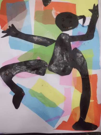 切り絵で踊るブラックマンを表しました。