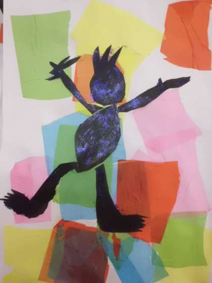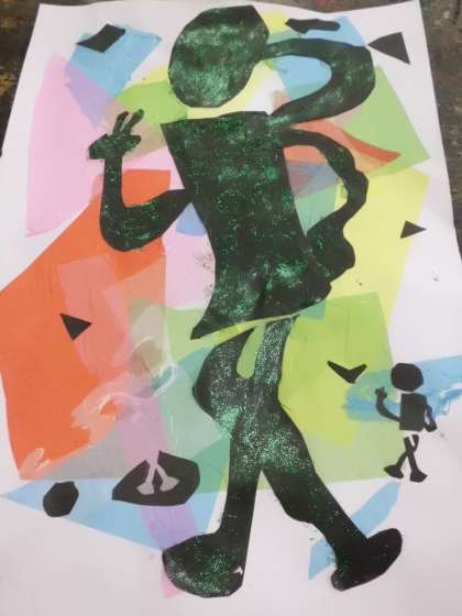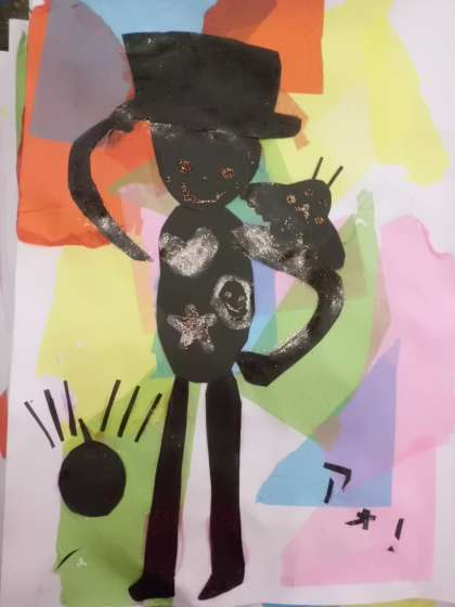 切り絵で踊るブラックマンを表しました。