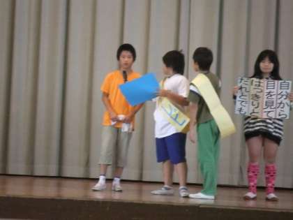 先週の木曜日、委員会紹介集会がありました。今回は代表委員会、環境整備委員会、図書委員会の3つの紹介でした。