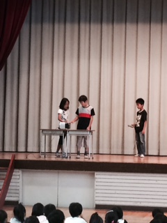 先週の木曜日に引き続き昨日、委員会紹介集会がありました。昨日は、放送委員会、集会委員会、保健給食委員会の紹介でした。