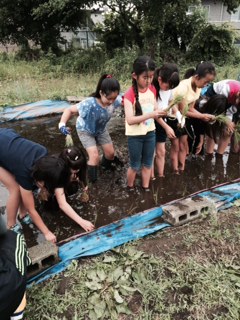 6月12日月曜日に、5年生が田植えをしました。ゲストティーチャーの方を迎えて、行ないました。
