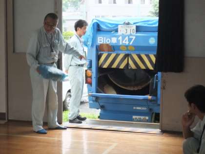 先日、戸吹清掃工場の方々をお招きして、4年生がごみの学習をしました。初めにごみ処理の場所、方法、そして3Rについてなど学び、そのあと、ごみ収集車へのごみの投入の体験、そして、ごみの分別体験を行いました。