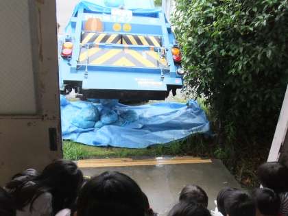 先日、戸吹清掃工場の方々をお招きして、4年生がごみの学習をしました。初めにごみ処理の場所、方法、そして3Rについてなど学び、そのあと、ごみ収集車へのごみの投入の体験、そして、ごみの分別体験を行いました。