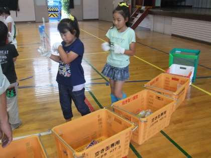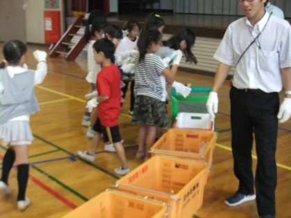 先日、戸吹清掃工場の方々をお招きして、4年生がごみの学習をしました。初めにごみ処理の場所、方法、そして3Rについてなど学び、そのあと、ごみ収集車へのごみの投入の体験、そして、ごみの分別体験を行いました。