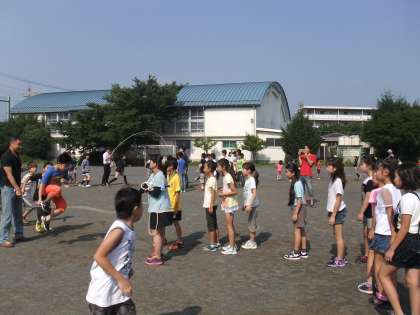 7月11日土曜日の朝、恒例の大縄集会が開催されました。各クラス、自分たちの目標を発表してから跳びました。制限時間は3分間です。どのくらい跳べたでしょうか。練習のときのほうが跳べたかな?大会の日のほうが跳べたかな?