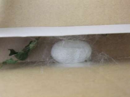 3年生で飼っているカイコがずいぶん大きくなりました。もうすでに、繭もいくつかできています。