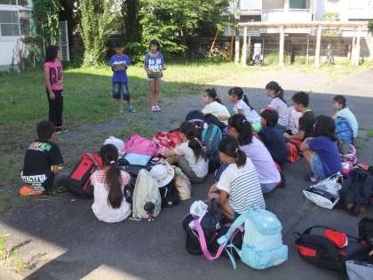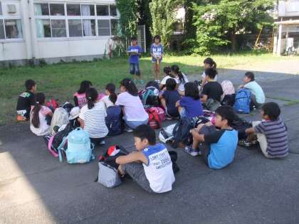 今日、5年生が静岡県の清水市へ移動教室に行きました。みんな元気に出発しました。今日は、お茶摘み体験、工場見学、地引網、三保の松原の見学などをしています。詳しくは、帰ってきてからホームページで紹介します。