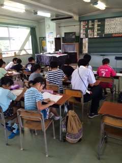 今日から、4年生以上を対象に、算数道場を開いています。集まった子供たちは、熱心に勉強に励んでいました。