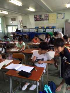 今日から、4年生以上を対象に、算数道場を開いています。集まった子供たちは、熱心に勉強に励んでいました。