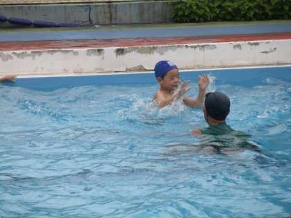 1学期末、1・2・3年生の合同水泳指導がありました。普段1・2年生、3・4年生、5・6年生と2学年合同での水泳指導を行っているので、子供たちは新鮮だったようです。その前には4・5・6年の合同水泳も実施しており、その様子はホームページでも紹介しております。