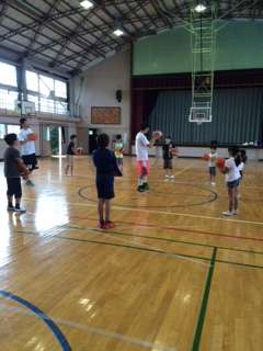 9月13日土曜日に、サタデースクールが行われました。今回は、東京八王子トレインズというプロのバスケットられないボールチームの方が講師でした。ボールの扱い方、ドリブルのやり方、シュートのやり方など、とても丁寧に教えてくださいました。